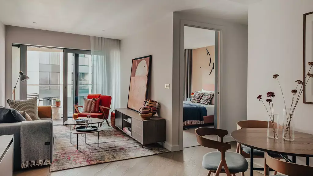 Residents benefit from access to a wide range of exclusive lifestyle amenities, including swimming pools, modern gyms, cinema rooms, co-working spaces, private meeting rooms, spa facilities, and landscaped roof terraces. Surrounded by 48 acres of green public space, the development also offers direct access to riverside walks and a vibrant neighbourhood filled with cafés, restaurants, galleries, and cultural venues.