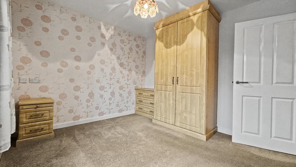 BEDROOM 2 (3.26m x 2.99m approx)(10'6" x 9'8" approx) with fitted carpet, built-in double wardrobe, bedside table, front window, radiator, telephone point, and six power points.