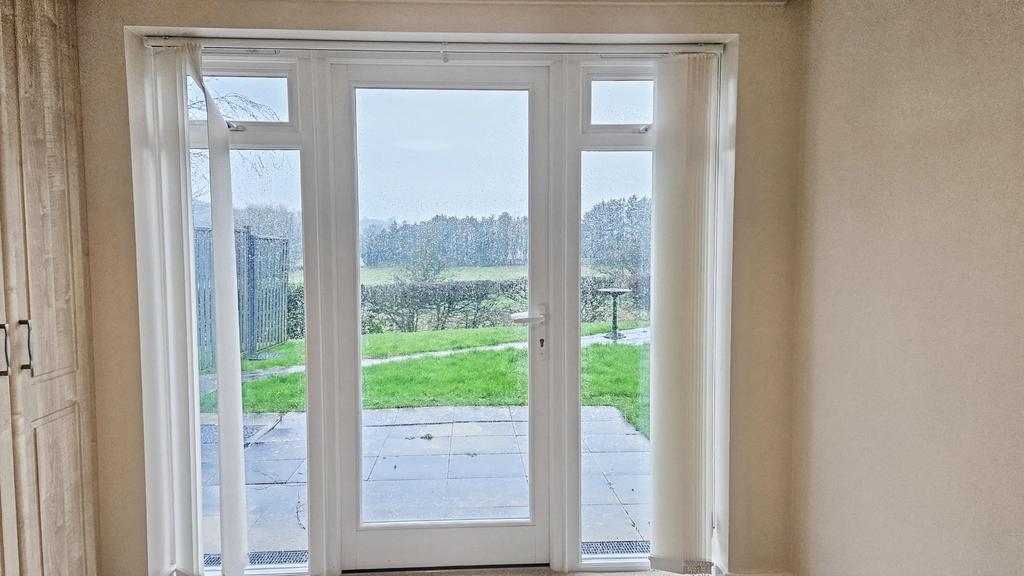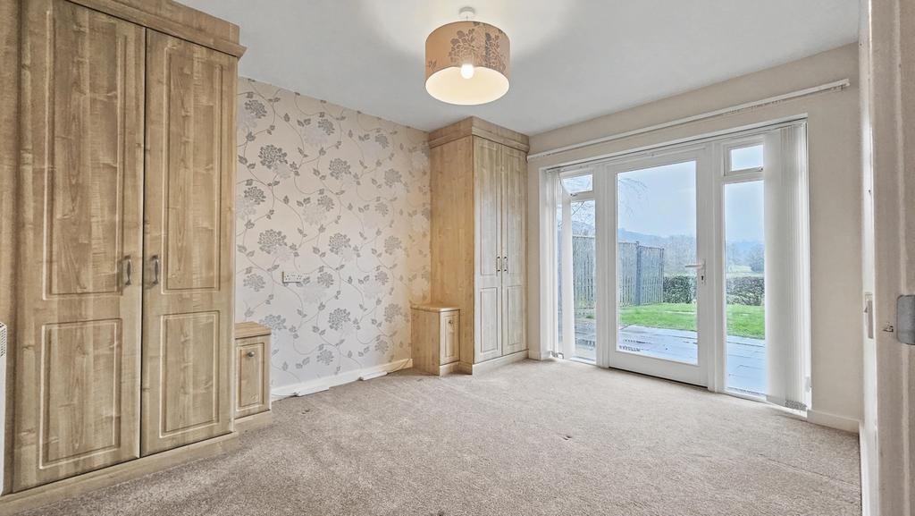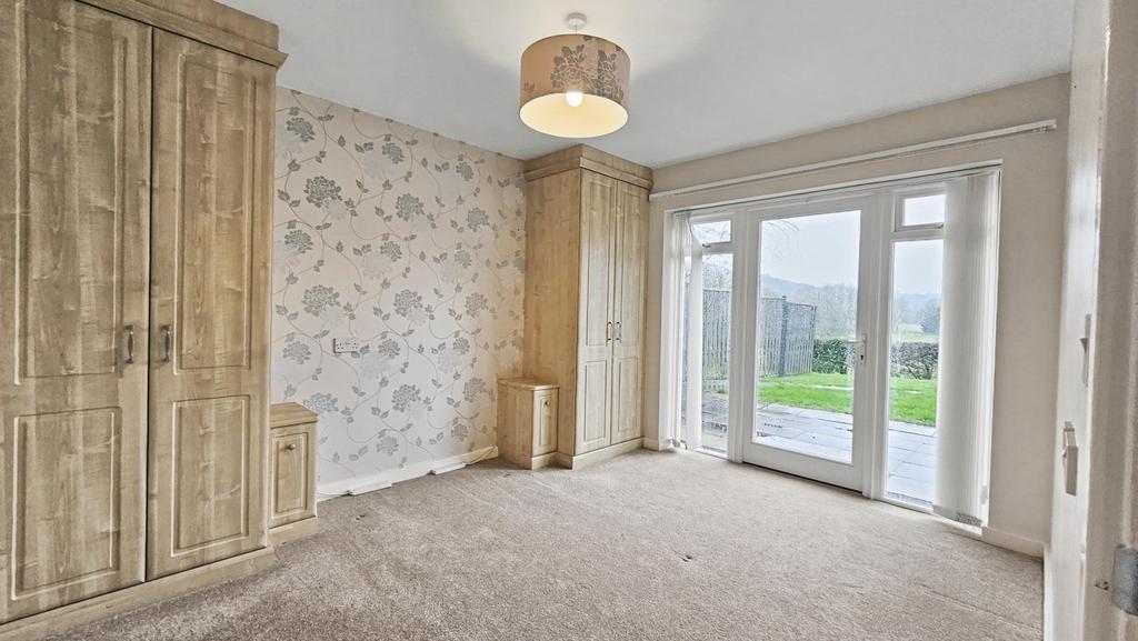 BEDROOM 1 (3.96m x 3.06m approx) (12'9" x 10' approx) with fitted carpet, two double built-in wardrobes, and bedside tables. Eight power points, TV aerial point, and glazed door with side windows leading to the rear garden area.