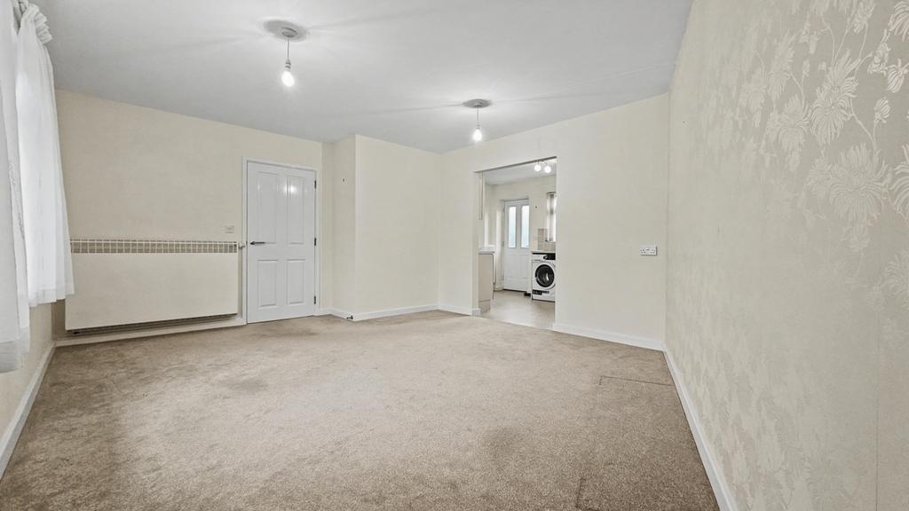 SITTING/DINING ROOM (5.04m x 4.13m approx)(14'3" x 13'5"approx) with fitted carpet, front window, radiator, six power points, TV aerial point, and open way to kitchen.