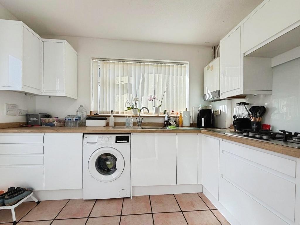 To the rear, the kitchen is fitted with a range of wall and base units, providing ample storage and worktop space, with convenient access to the garden and flooded with natural light. Adjacent to the kitchen is a separate dining room, offering a dedicated space for family meals and entertaining, while also providing flexibility to suit a variety of lifestyles. Sliding doors open out onto the garden, allowing you to dine alfresco with ease in the summer.