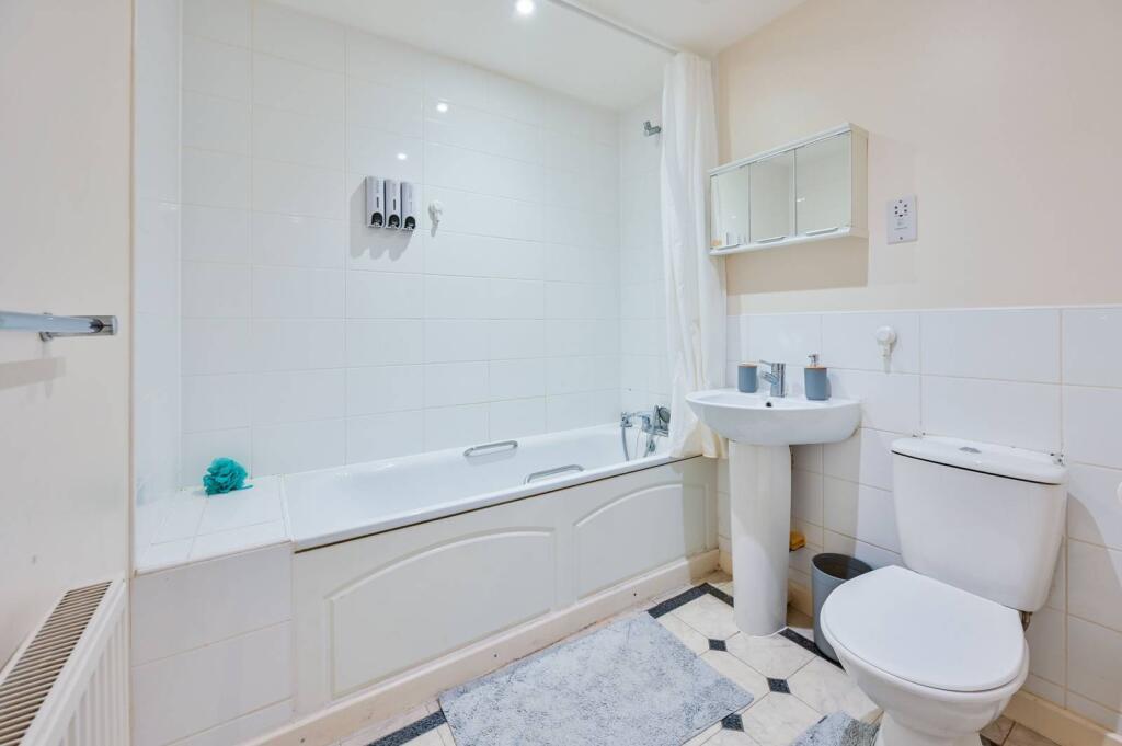 The property features a spacious open‑plan kitchen, living and dining area, enhanced by dual windows that allow natural light to fill the room. The principal bedroom includes built‑in wardrobes and a contemporary en‑suite shower room, while the second bedroom is also a well-sized double. A modern three‑piece bathroom and ample hallway storage complete the internal layout. Residents also benefit from access to well-maintained communal gardens and secure bicycle storage.