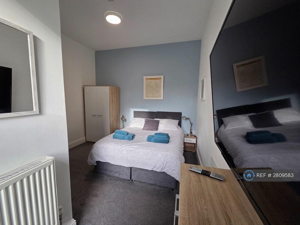 Comes furnished with double bed, wardrobe, chest of draws, bedside table and curtains.