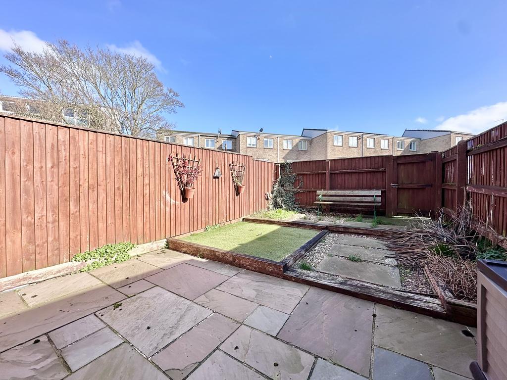 Externally the property benefits from a private rear garden. The garden is low maintenance with a slabbed patio area, raised sleeper beds and a small artificial lawn. The garden is enclosed via a wooden fence and there is a single gate providing access. To the front of the property there is a driveway providing off road parking.