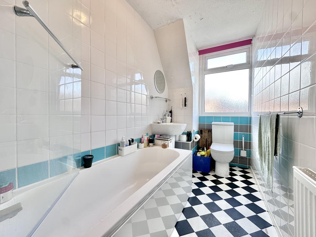 The first floor landing provides access to three rooms as well as a further staircase that leads to the second floor. The lounge is located at the rear of the first floor and overlooks the rear garden. To the front of the first floor is a double bedroom as well as the family bathroom. The bathroom benefits from fully tiled walls, a bath with shower over and glass shower screen, wash hand basin, WC and radiator as well as a frosted UPVC double glazed window to the front aspect.