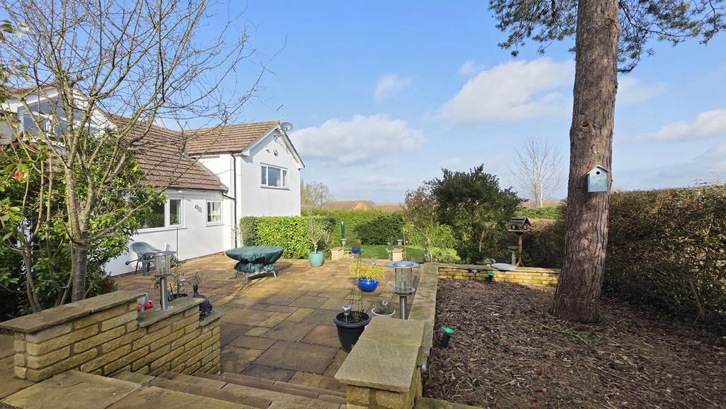 The generous garden has raised patio with steps leading down to a further patio, both lending themselves perfectly to outdoor entertaining. There is a great sized lawn, mature trees and shrubs, raised beds and picturesque views, plus a shed and gated side access.