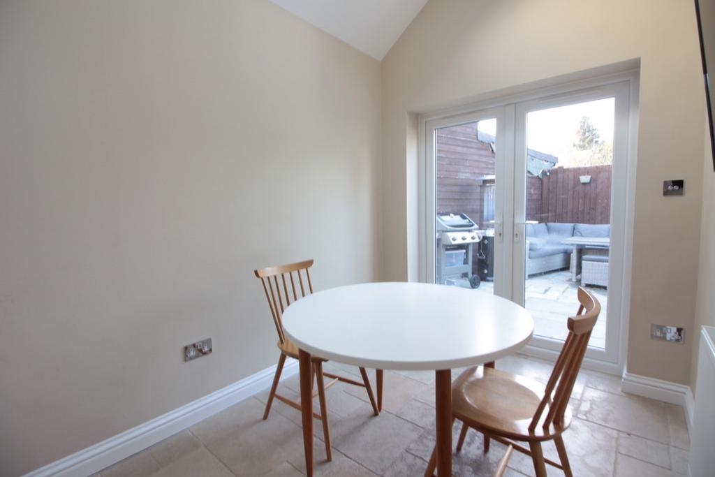 The property offers contemporary accommodation comprising, entrance hall, cloakroom, living room with attractive fireplace, wood burning stove, dining room with door to garden, luxury kitchen/breakfast room with integrated appliances, dining area with double doors opening on to rear patio. On the first floor a master bedroom with en-suite shower room, two further bedrooms and family bathroom. Gas central heating and double glazing. Outside the property benefits from a delightful rear garden with a secluded patio area, laid to lawn, flower and shrub borders. There is an impressive garden cabin office with fitted work station, high-speed internet, wood flooring and bi folding doors to patio area. At the rear of the office is a very useful garden shed/storage room. There is off road parking at the front with side access to the rear garden. The property is offered unfurnished.