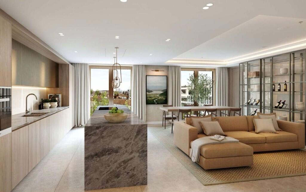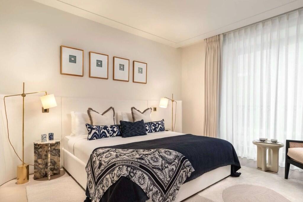 The apartment has been designed with grand proportions and refined finishes throughout. The spacious reception and dining areas are filled with natural light, creating an elegant atmosphere ideal for both everyday living and entertaining. The contemporary kitchen features high-quality appliances and sophisticated cabinetry, complementing the apartment’s overall design. Each bedroom offers generous space and comfort, with luxurious bathrooms finished with premium materials and modern fittings.