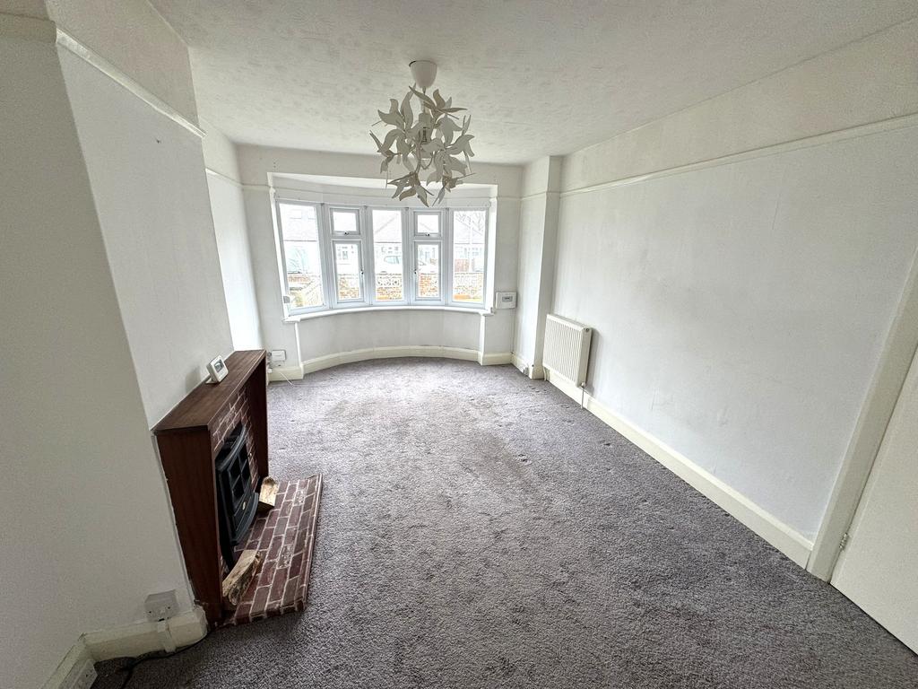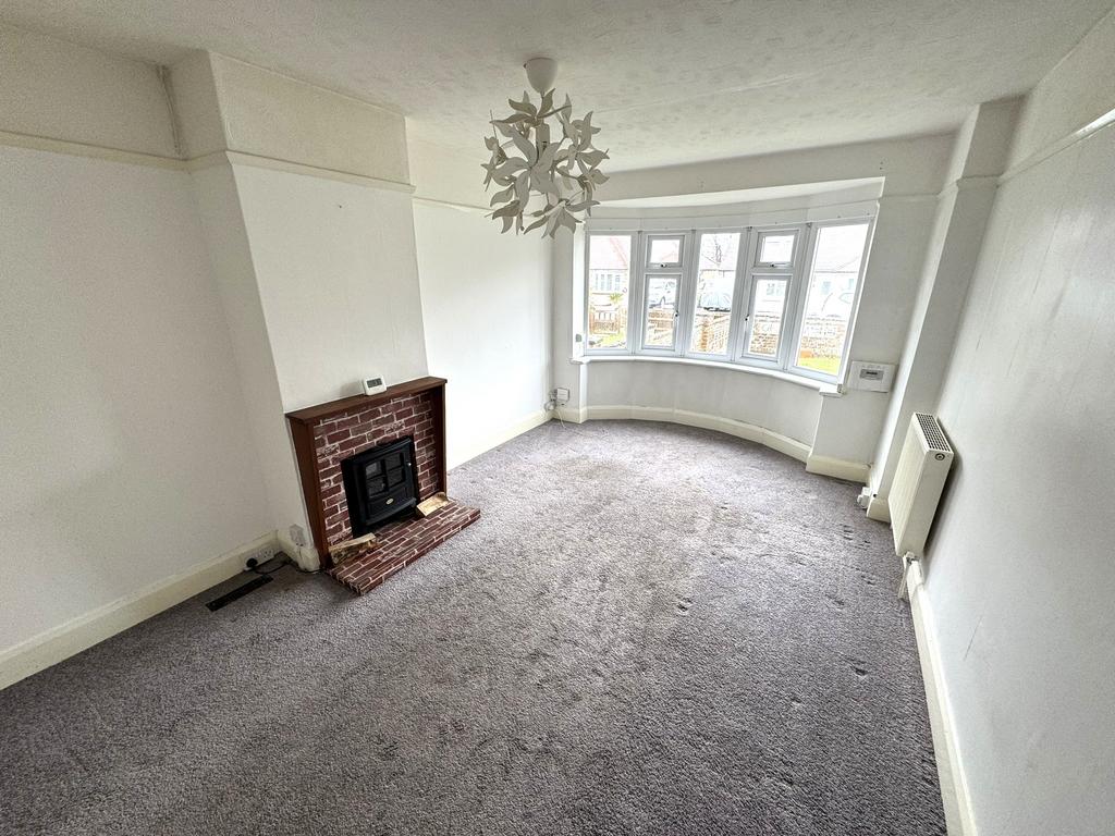 Double glazed bay window to front, feature fireplace, picture rail, radiator: