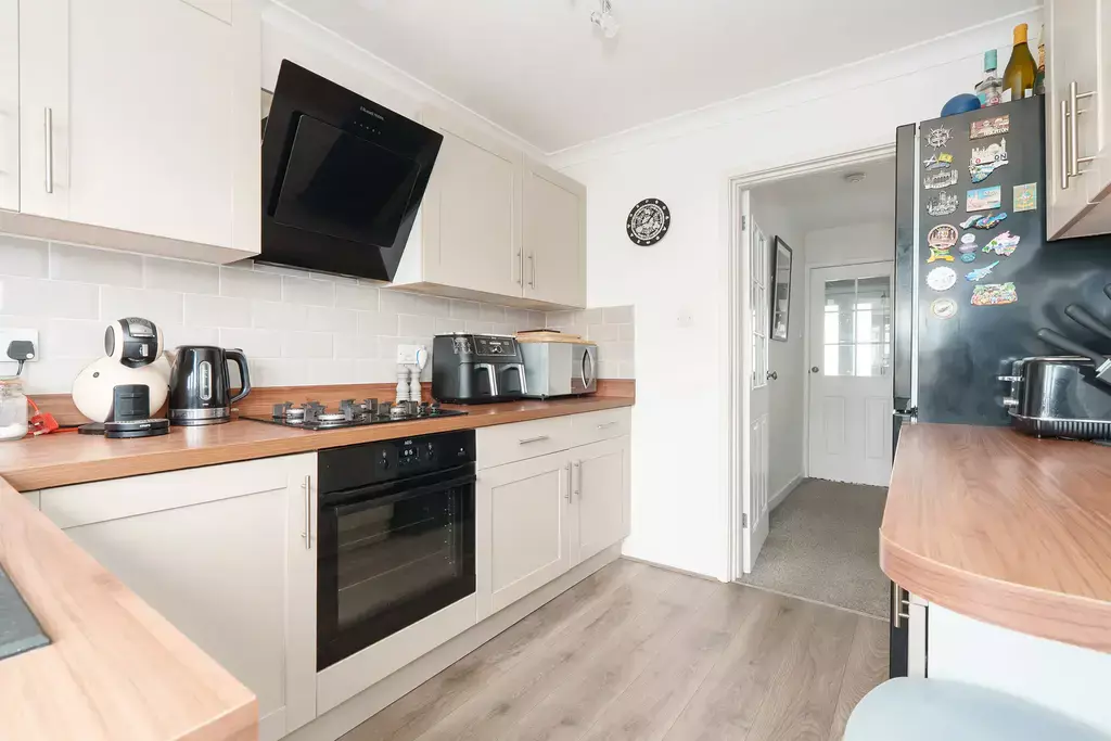 Upstairs, there are three bedrooms, two well-proportioned doubles and a flexible single bedroom that could equally function as a home office, along with a contemporary family bathroom. Neutral décor throughout means the property is move-in ready, while still offering scope to personalise.