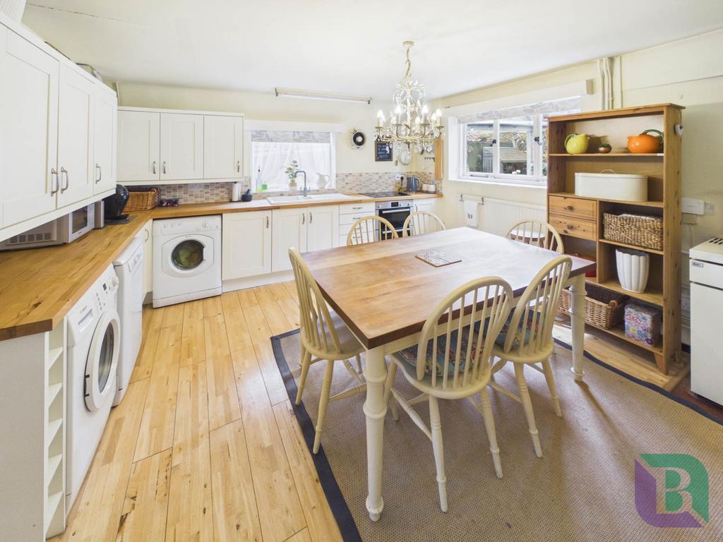 To the rear, the kitchen offers ample space for cabinetry and appliances, complemented by a ground floor WC for convenience. There is an additional lean too with shelving, providing useful storage space and somewhere to leave the muddy Wellies!
