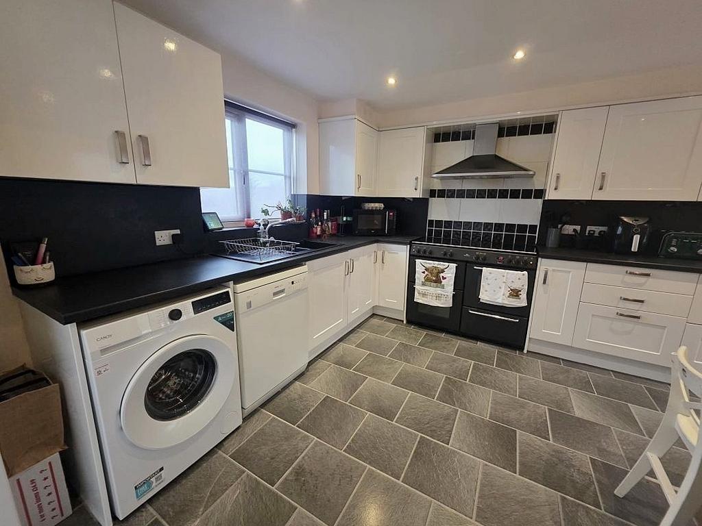 L-Shaped Kitchen / Dining Room 15’9 > 7’1 x 16’3 > 9’7 (4.8m > 2.16m x 4.95m > 2.92m): Double glazed window to front elevation, part glazed door opening to rear garden, built in storage cupboard, fitted with wall and base level units with worktops over, space for cooker with extractor hood above, plumbing for washing machine and dishwasher, two radiators, 1 ½ bowl, composite sink with mixer tap over and cupboards beneath, wall mounted gas fired boiler.