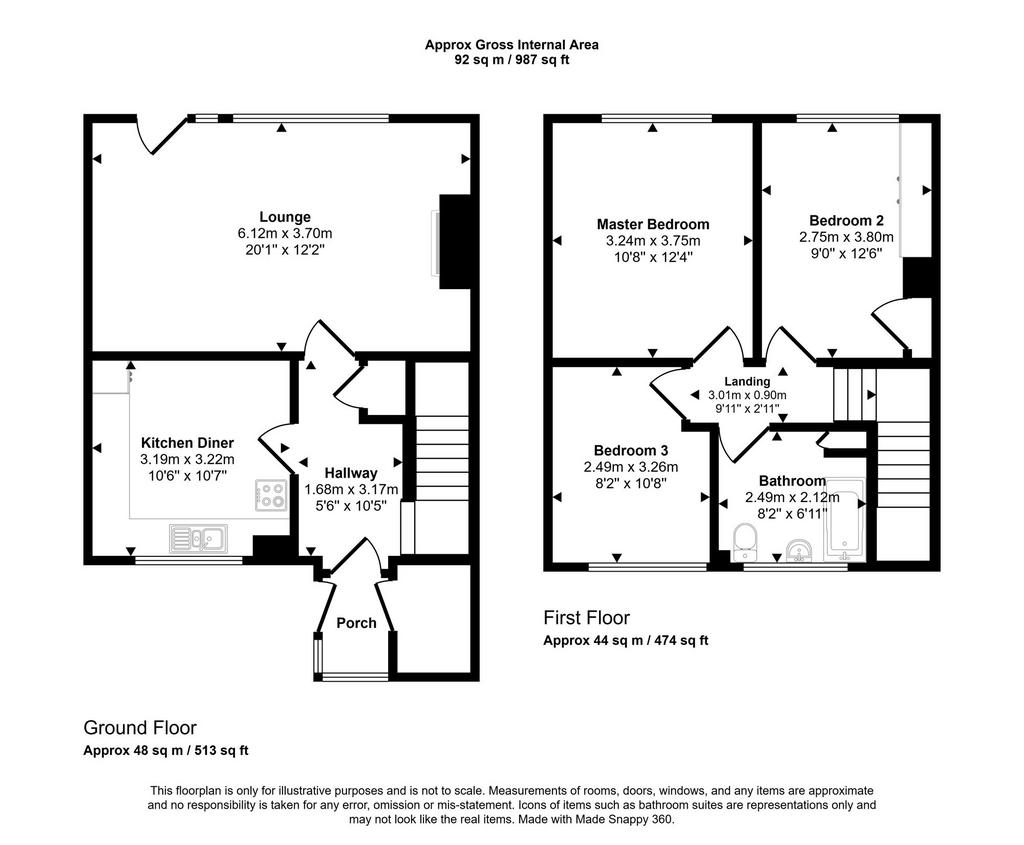 To the first floor are three well-proportioned double bedrooms, all flooded with natural light and offering comfortable, private accommodation. Completing the internal layout is a three-piece family bathroom, fitted with white fixtures and maintained to a high standard.
