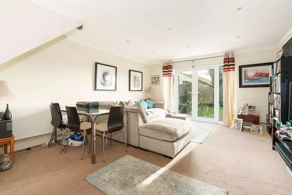 - Living/dining room with French doors to the external hardstanding seating area