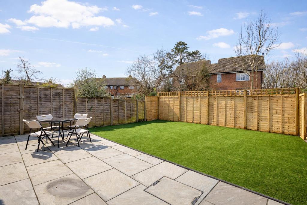 Step Outside - The rear garden enjoys a sunny south-westerly aspect and is accessed directly from the kitchen/diner onto a patio area, ideal for outdoor seating and dining. There is an outside tap, a large metal shed and an area of artificial lawn. A stream runs along the rear boundary, creating a pleasant backdrop. Please note the embankment beyond the stream is owned by Affinity and maintained by the current owners.