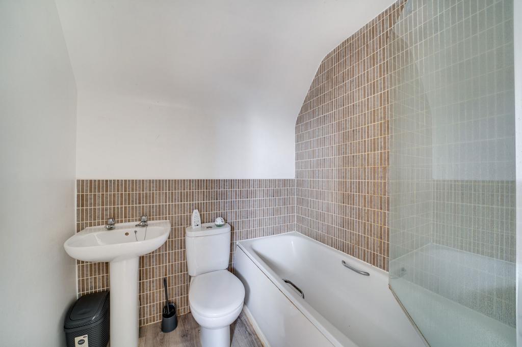 To the first floor, the landing leads to two well-proportioned bedrooms. The principal bedroom offers comfortable accommodation with space for freestanding furniture, while the second bedroom provides flexibility for use as a child’s room, guest bedroom or home office. Completing the accommodation is a family bathroom fitted with a modern suite.