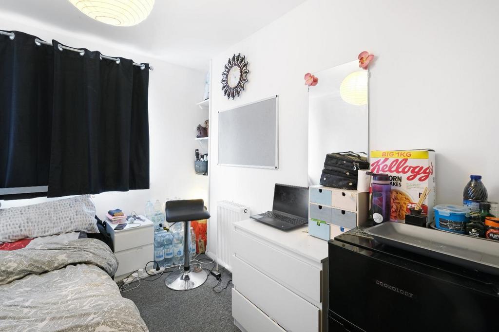The property benefits from a generously sized communal living space that flows into the kitchen, creating a comfortable and practical shared environment. The private rear garden offers additional outdoor space, perfect for socialising or unwinding.
