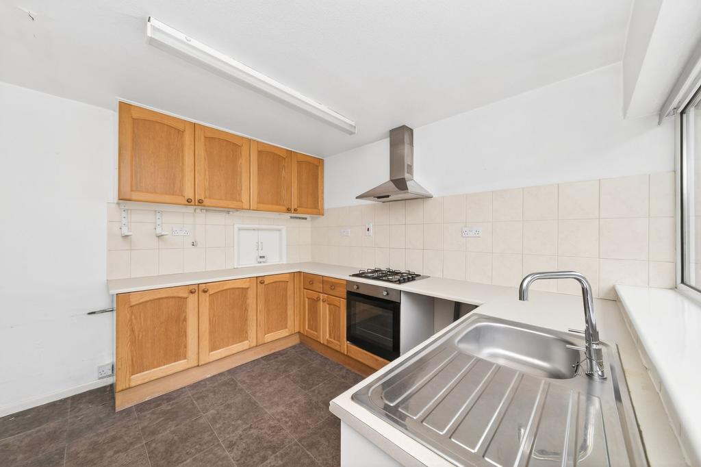 As the photography suggests, the open plan living dining room is a generous proportioned light and airy reception room, which features a bank of double-glazed windows to the front elevation with pleasant open outlook across neighbouring rooftops and of a tree-lined backdrop. There are two ceiling lights, two central heating radiators, telephone point, and a multi-panel timber and glazed door provides access to the inner hallway.