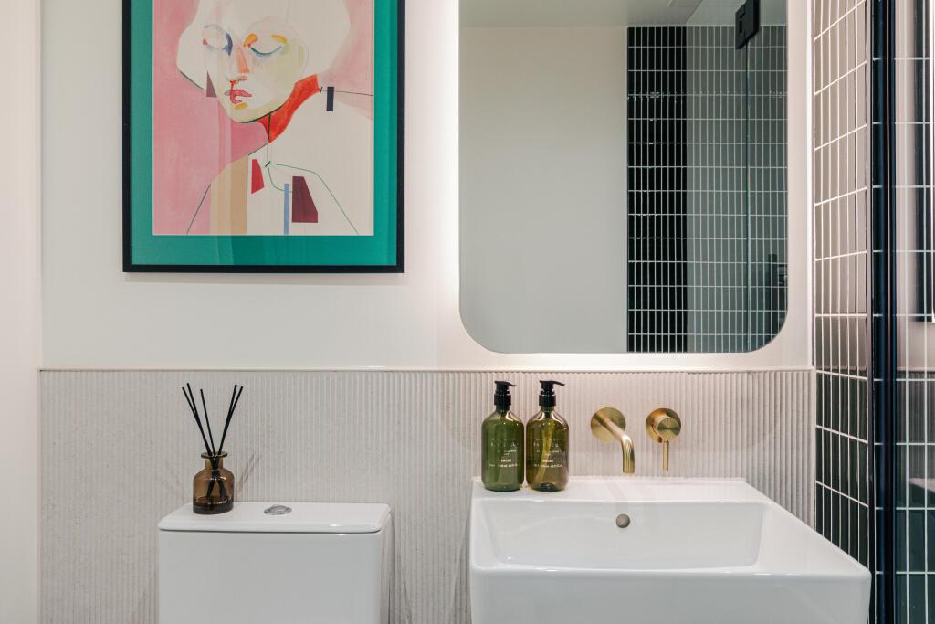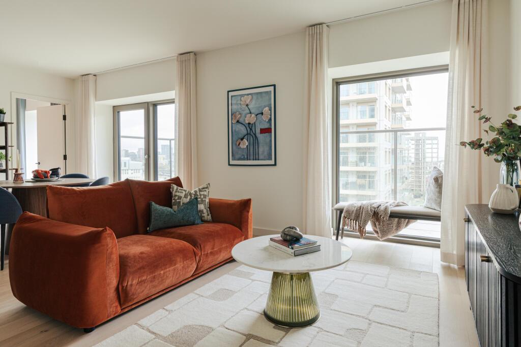 This well-designed one-bedroom apartment is located on the 7th floor of the Latham Building at Riverscape, offering approximately 580 sq ft of contemporary internal living space together with a 102 sq ft private terrace overlooking Lyle Park. The apartment enjoys a bright north-facing aspect with expansive windows that bring in natural light and create a comfortable living environment.