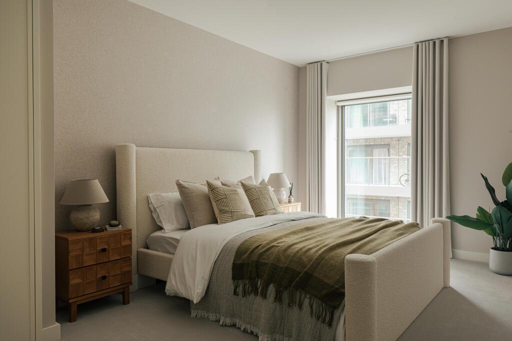 This generously proportioned three-bedroom apartment is located on the 2nd floor of the Latham Building at Riverscape, offering approximately 1,121 sq ft of contemporary internal living space together with a 102 sq ft private south-facing enclosed balcony enjoying views towards Lyle Park. The apartment benefits from a desirable south-west aspect, allowing natural light to fill the living areas throughout the day.