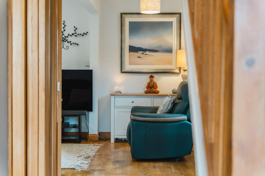 The kitchen diner is a real highlight, flooded with natural light thanks to plenty of windows and bi-folding doors out to one of the patio areas. There’s plenty of room for a dining table, while the shaker style timber units, oak worktops, Belfast sink and built in appliances complete the other end of the space. A handy utility sits just outside through a covered canopy, with space and plumbing for laundry appliances.