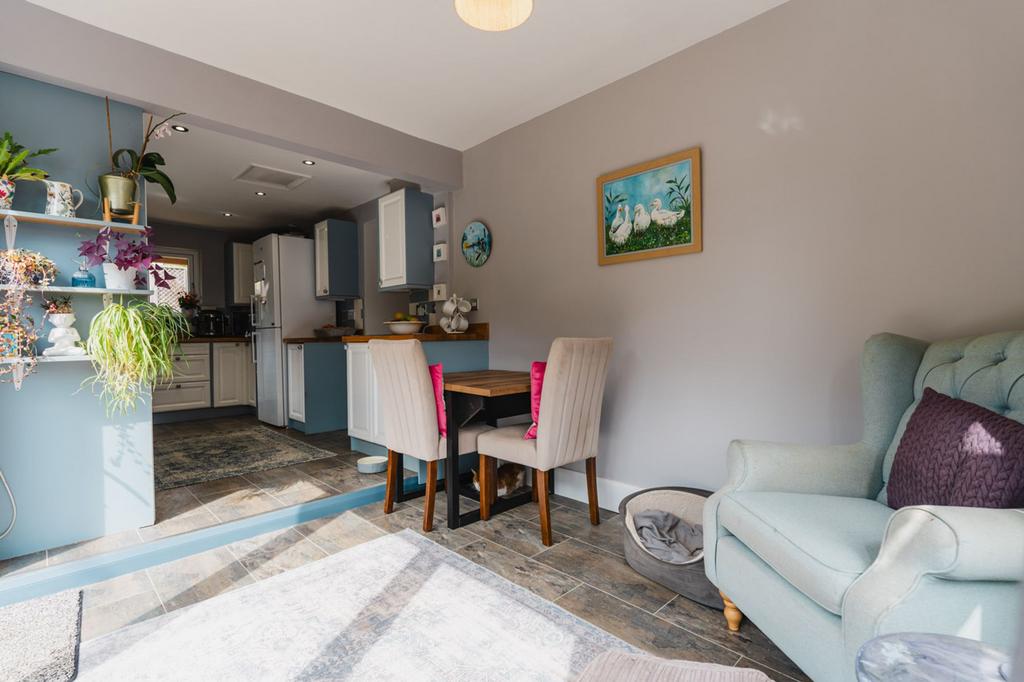 Stepping inside through the arched front door you’re welcomed by a spacious hallway, complete with hardwood flooring and a timber staircase leading to the first floor. Situated to the front is the dining room, full of period character with a bay window, open fireplace and original picture rails. The spacious living room is equally inviting, accessible through glazed double doors from the hall, a cosy place to relax with log burning stove, hardwood floor and French doors opening to the gardens.