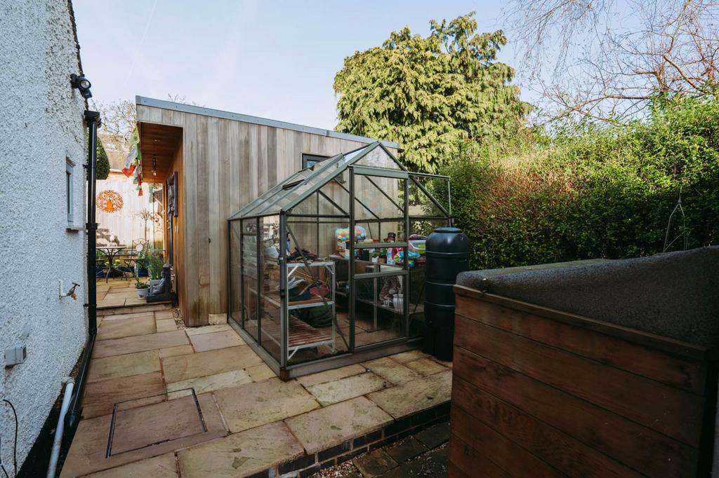 Externally to the front, the house looks every inch the classic 1920’s residence, framed by a stone wall and laurel hedge for privacy. A gravel driveway sweeps up, offering parking for three cars, and there’s even a vegetable patch! The wraparound rear gardens are a real delight, offering different areas to enjoy throughout the day. To one side is a large patio ideal for outdoor dining, while steps lead to the lawn and mature borders. Hugging the rear is a fantastic canopy, allowing shelter for entertaining all year round! On the opposite side is an additional sunny patio, a greenhouse and timber shed, plus access to the superb garden room.