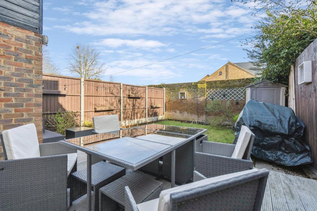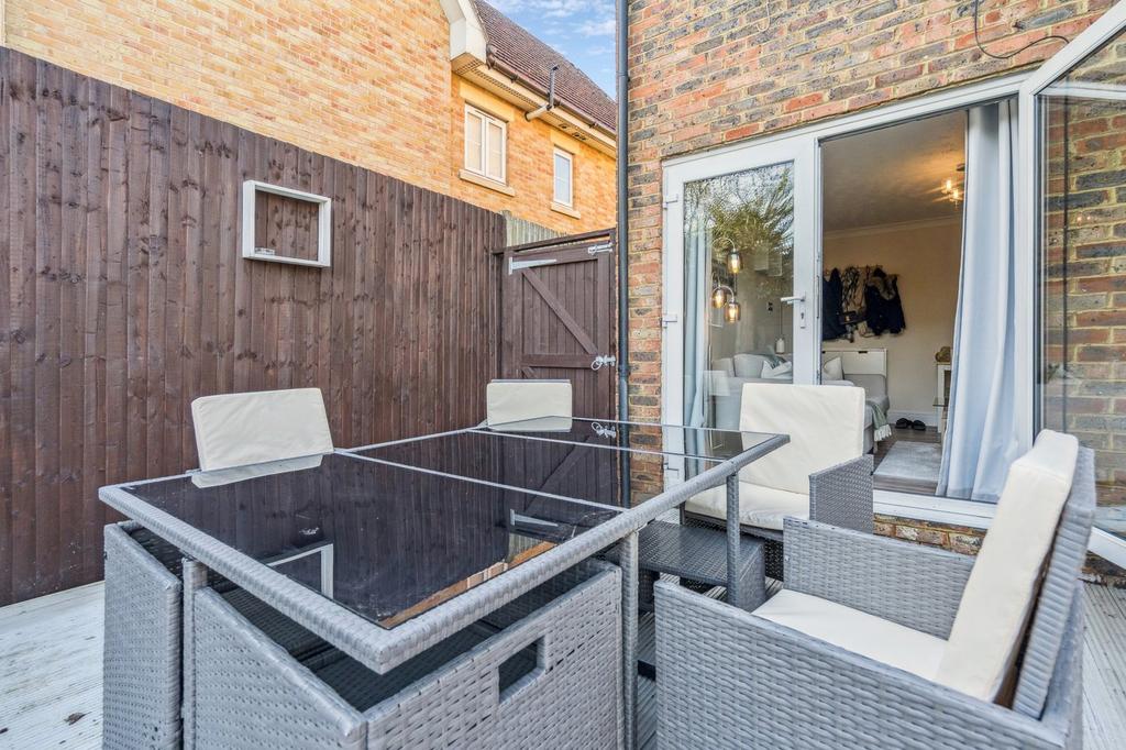 Upon entering, you are welcomed into a bright and spacious living room, offering ample space for a dining table and chairs as well as a three-piece sofa suite. This inviting room is flooded with natural light thanks to French doors that open directly onto the private rear garden a wonderful space for entertaining or enjoying sunny afternoons. The garden also benefits from useful side access.