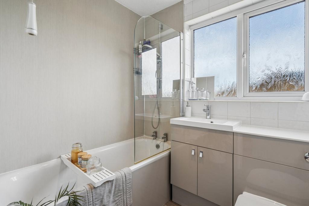 The living room further offers generous under-stairs storage with lighting, adding everyday practicality. The kitchen is fitted with a range of eye and base level units and includes integrated appliances, providing both functionality and style. Upstairs, the landing provides access to the loft, which has been fully boarded by the current owners, creating an excellent and highly usable storage space. There is also an airing cupboard housing the tumble dryer, offering additional storage for towels and bedding. The principal bedroom is a fantastic size, filled with natural light and complemented by full-length fitted mirrored wardrobes. The modern three-piece family bathroom is well-appointed and features a bath with shower attachment. This fantastic freehold home, offered chain-free, is ready to move into and early viewings are highly recommended.