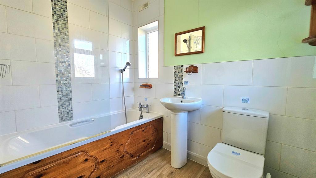 Having a UPVC double glazed window to front and side, W.C, wash hand basin, bath with electric shower over, radiator and laminate flooring.