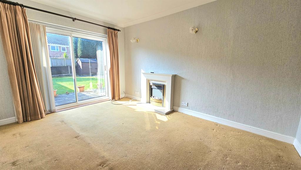 Having a double glazed sliding door to rear, electric fireplace with surround and hearth, additinal electric radiator and carpet flooring.