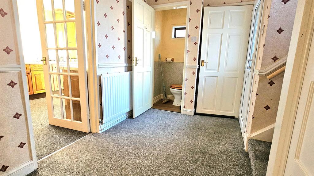 Having a UPVC double glazed door to front, radiator, carpet floor, and stairs to landing.