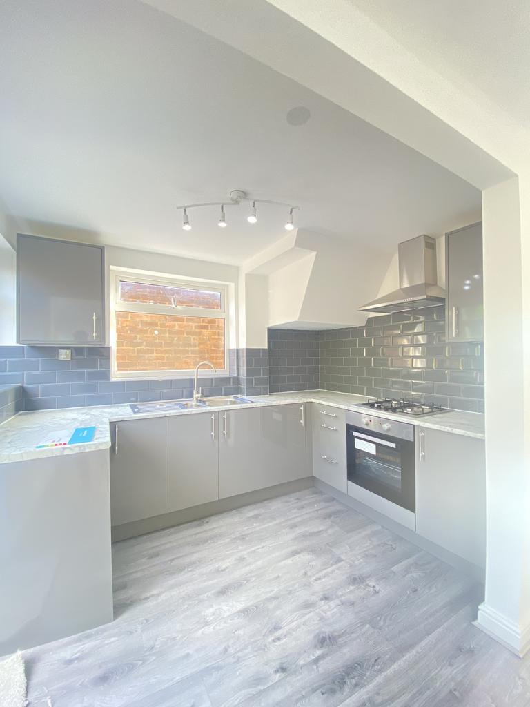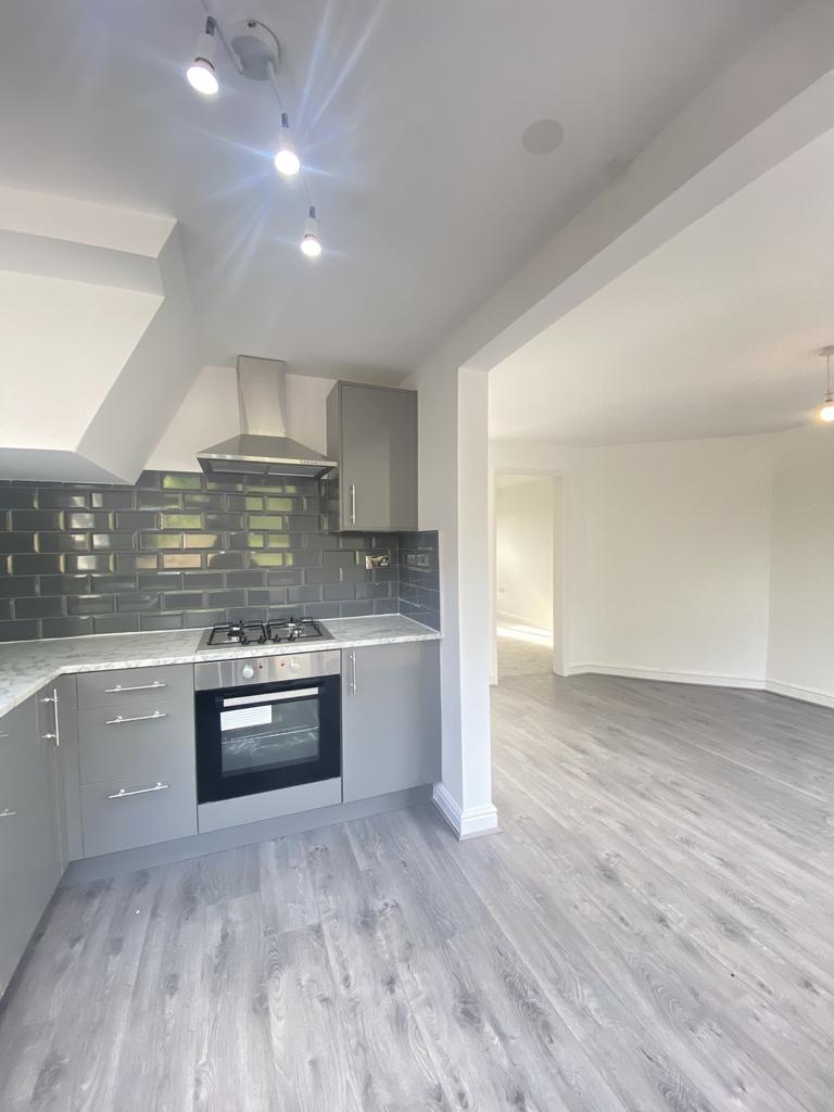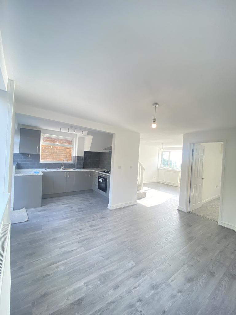 At the heart of the home is an open-plan kitchen and dining area, fitted with an integrated hob and oven, which flows seamlessly into the open-plan reception room, creating a bright and connected living space ideal for everyday living and entertaining.