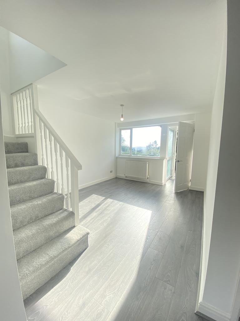 A bright and welcoming living space that connects seamlessly with the open-plan kitchen and dining area, creating a comfortable environment for relaxing and entertaining. The room benefits from good natural light and offers ample space for seating and family gatherings.