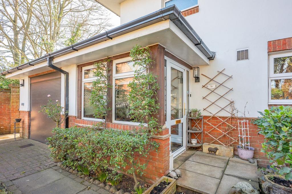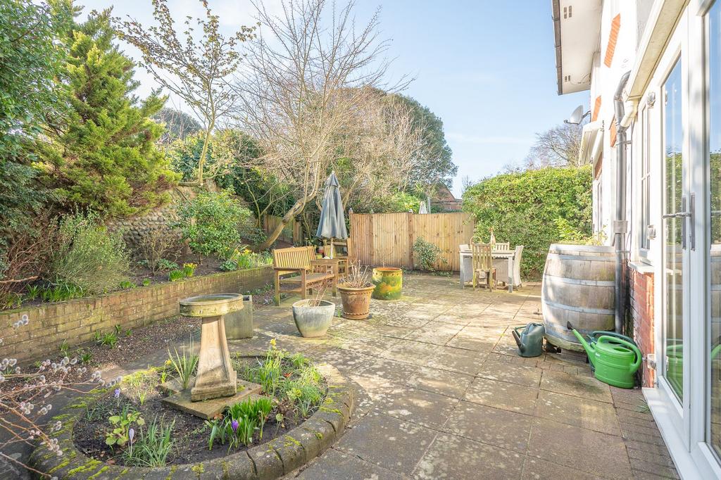 An extensive landscaped garden to the rear and side aspects features patio areas, raised shrub beds, and attractive brick and flint walls. An electric awning is positioned over the patio doors leading from the lounge.