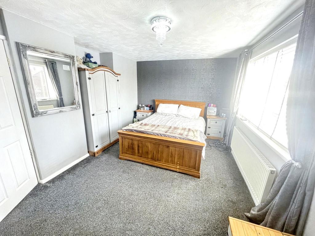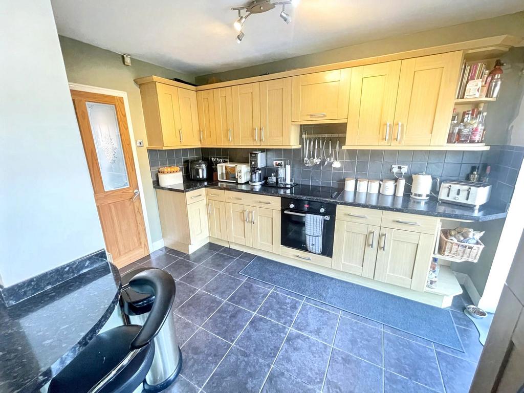 Fitted with a range of wall and base units with roll top work surfaces, one and a half bowl sink unit with mixer tap and splash back. Electric oven and ceramic hob with extractor hood, plumbed for automatic washing machine. Double glazed window to the rear central heating radiator. Double glazed French doors to the patio area and door to the lounge. Sliding door to the dining room, currently used as a fourth bedroom.