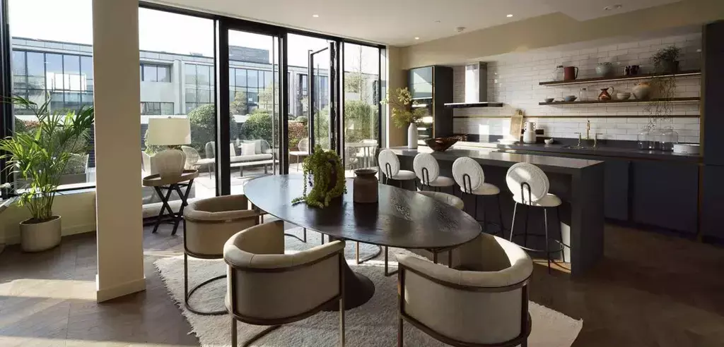 One of the most remarkable features of this Sky Villa is the extensive outdoor space. The property benefits from private terraces and a spectacular rooftop terrace offering sweeping views across the London skyline and the River Thames, creating an exceptional setting for entertaining or relaxation.