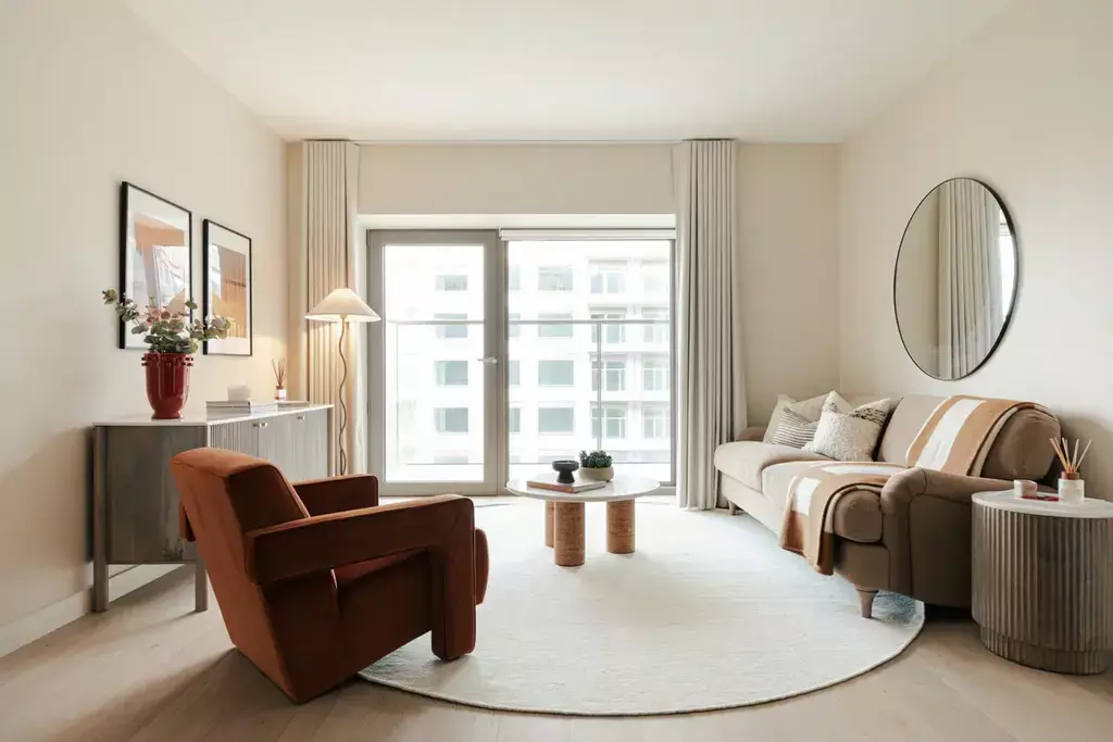 Set at an extraordinary point in East London where the River Thames meets Lyle Park and surrounded by extensive parkland and verdant landscaping making this one of the capital’s greenest and best-connected riverside developments.
