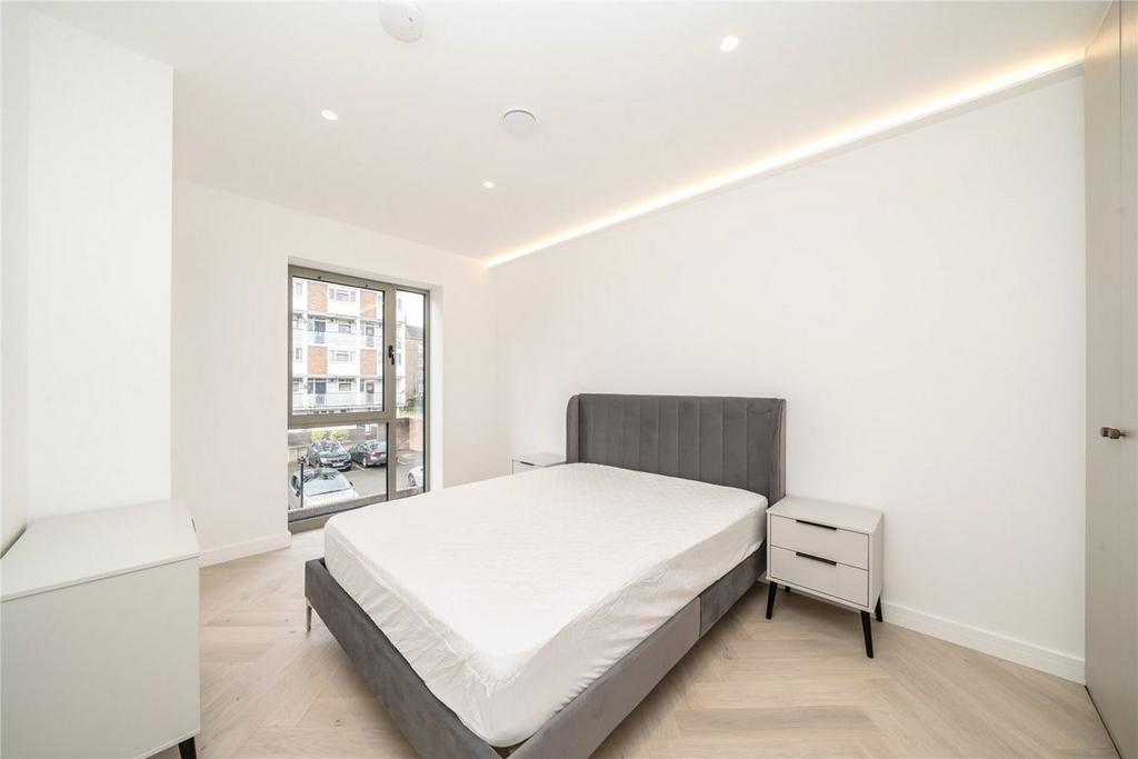 The double bedroom benefits from concealed lighting and bespoke Egger wardrobes, whilst the bathroom boasts a stylish finish.