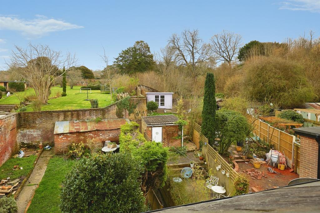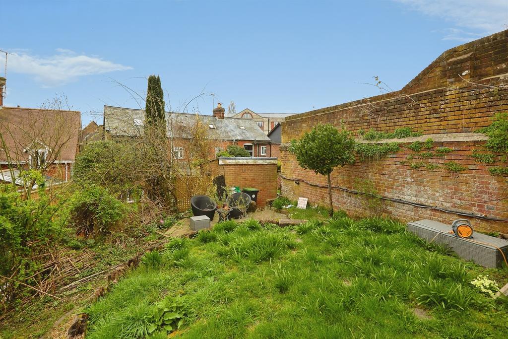 Catio - directly accessible from the kitchen. (this will be removed by the owner before completion of sale). Narrow shingle path to private garden with raised area of lawn, specimen bay tree, small patio for relaxing and entertaining. Steps up to home office/summer house
