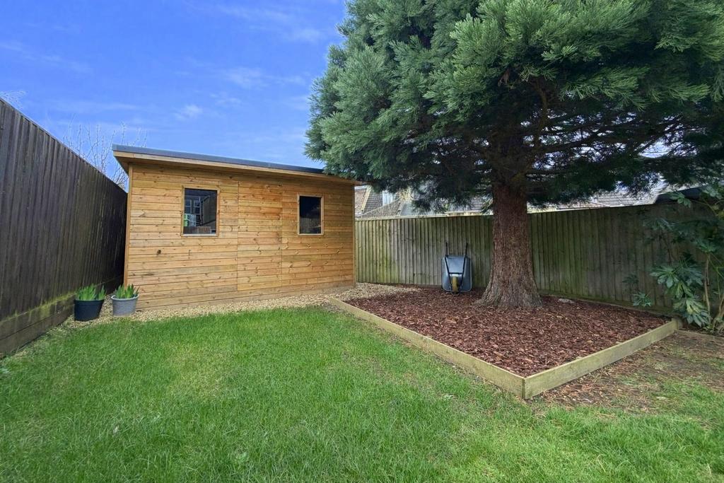 The property benefits from a driveway providing space to park two vehicles to the front and a spacious south westerly facing garden to the rear mainly laid to lawn with large patio perfect for entertaining, additional patio as well as a large timber garden store and gated side and rear access.