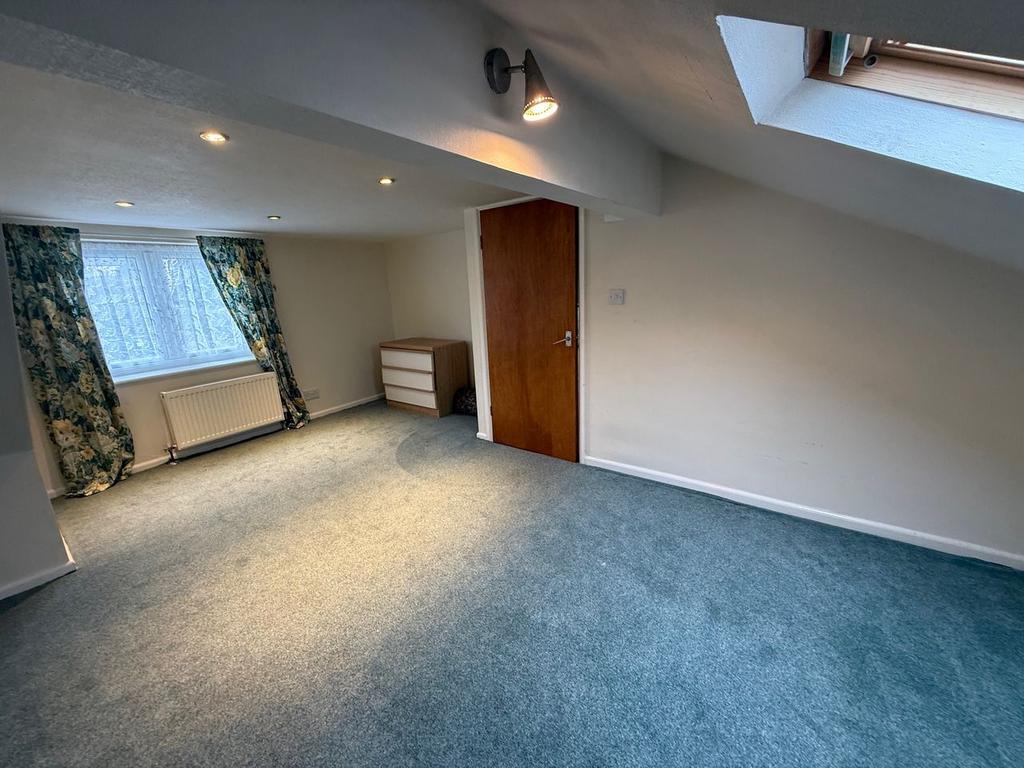 With gable end window, two double glazed Velux roof lights, two radiators and Eaves access.