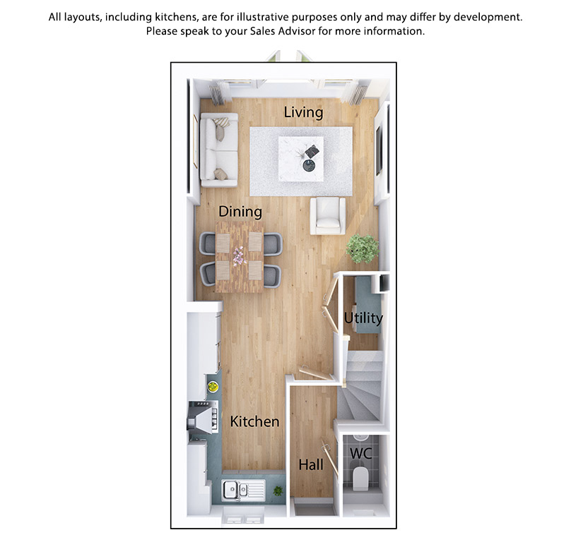 - Separate utility space & downstairs WC