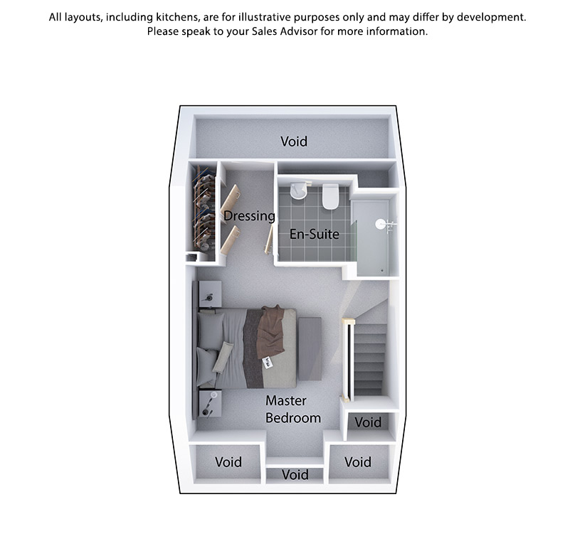 The Windsor continues to impress as you ascend to the top floor, entering the private sanctuary of the Master Suite. This luxurious space occupies the entire floor, and benefits from an en suite, featuring modern fixtures and rainfall shower. A dedicated dressing area with a built-in wardrobe is the perfect setting for getting ready in style.