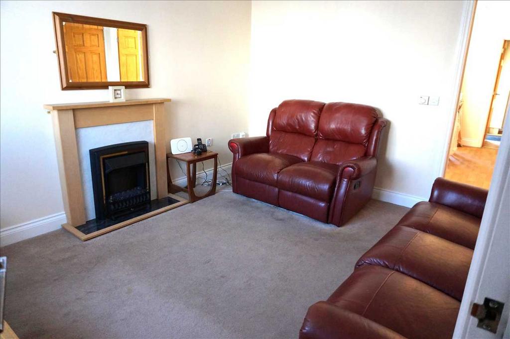 With uPVC framed and glazed window to front, ornamental fireplace, storage cupboard, electric power points, carpet, internal door through to the :