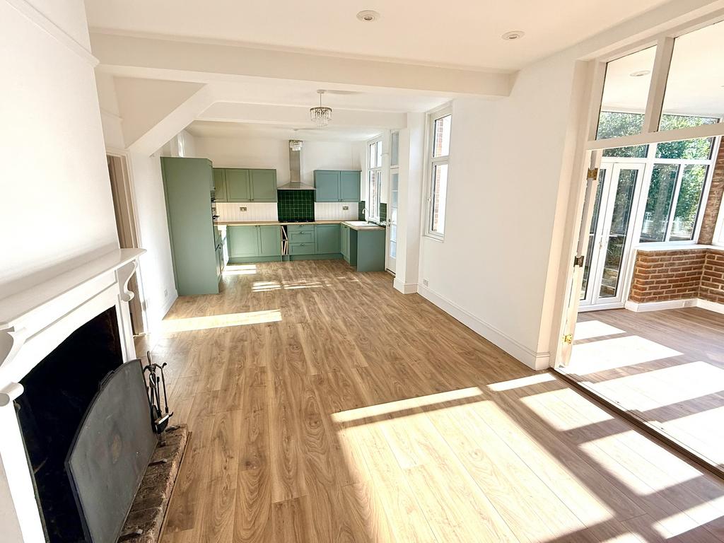 Description: Lyndhurst is accessed from Main Street in the heart of the village of Peasmarsh over a bitumen off street parking area providing parking for two cars and providing access to an attached garage on the western side of the property. The property comprises a square 19th Century detached villa of brick construction beneath a double hipped pitched tiled roof with later southern extensions. A central canopied front door opens into a large hall / stairway off which is a living room with bay fronted window, while on the opposite side of the hallway is a sitting room/ study again with bay fronted window and period fireplace. At the end of the hallway there is access into an impressive large kitchen / dining room with open working fireplace and south facing French doors leading out into a large sunroom / conservatory with access doors opening out to the garden. The kitchen offers a range of olive green shaker style wall and base units with wooden worktops, gas hob with extractor hood above, eye level double oven and space and plumbing for a dishwasher. Accessed from the kitchen is an enclosed rear entrance porch leading out to the garden, while at the dining room end is an access door through to a large utility room with secondary sink and plumbing for a washing machine and tumble dryer. A connecting door leads from the utility room through to a garage while on the opposite side of the utility room is a further door leading to a ground floor shower room /WC and beyond to a study / ground floor bedroom.