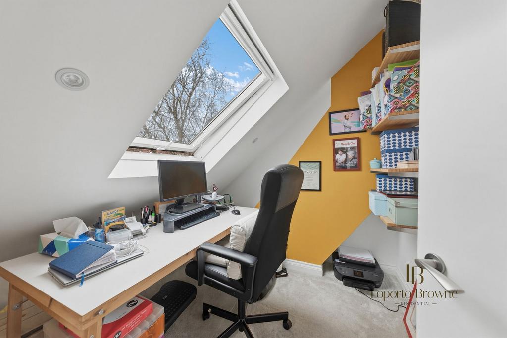 The top floor loft conversion has been cleverly arranged as a superb principal suite. This floor includes the main bedroom, a bathroom, a separate office space and a highly practical utility/laundry room, which is an incredibly useful addition for busy households.