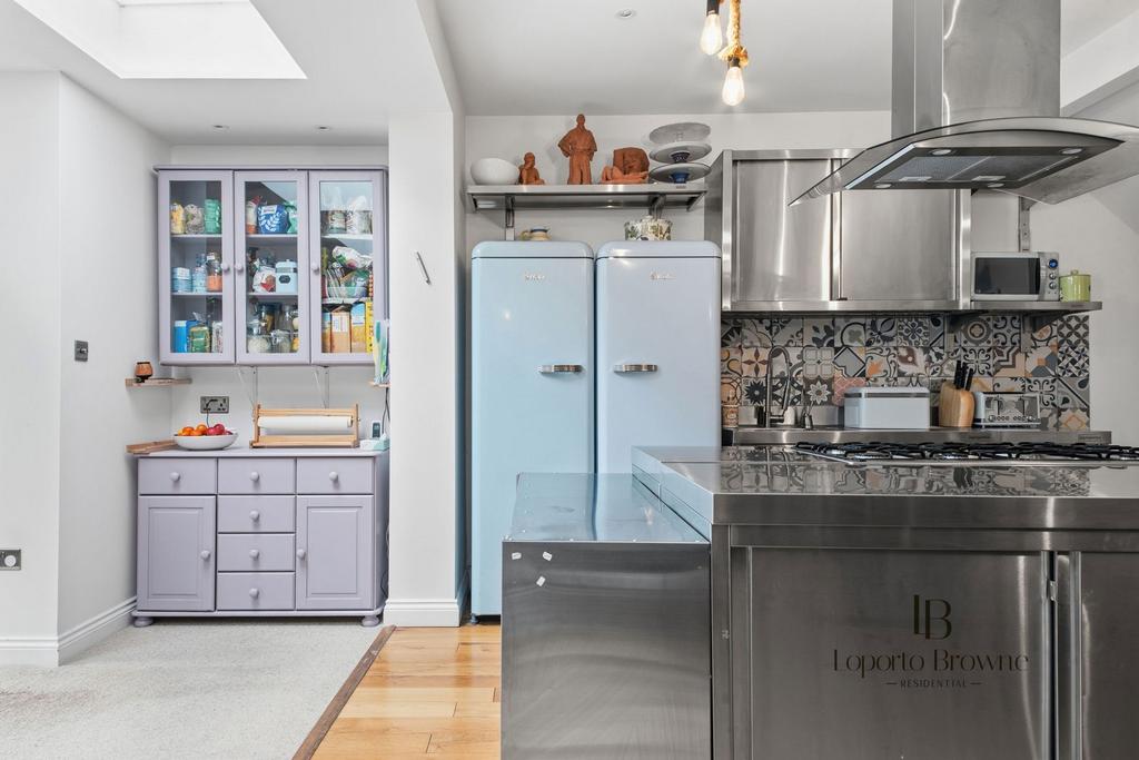 The house was comprehensively refurbished in 2019, including a full rear extension and side return, creating a generous and light-filled ground floor designed for modern family life. Real wood flooring mixed with wool carpet run throughout the ground floor, bringing warmth and continuity to the living space.