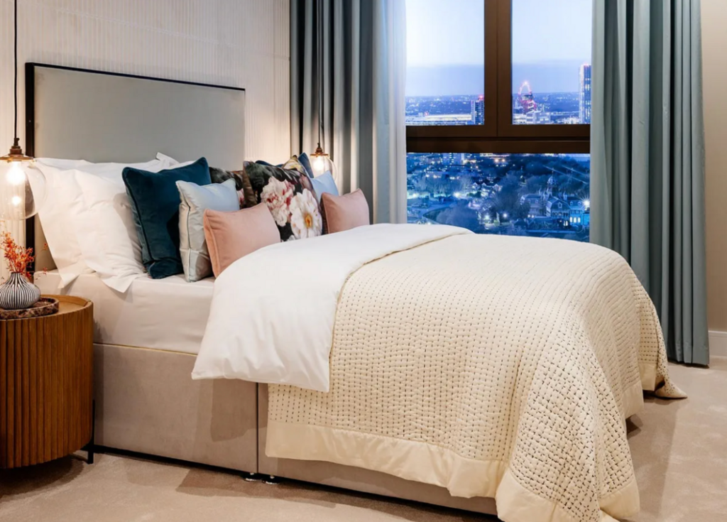 Set within 12 acres of landscaped parkland, the development combines city living with green surroundings. Residents benefit from excellent on-site amenities including Wi-Fi enabled outdoor spaces, a fully equipped gym, private cinema, co-working areas, business lounge, and a 24-hour concierge service.