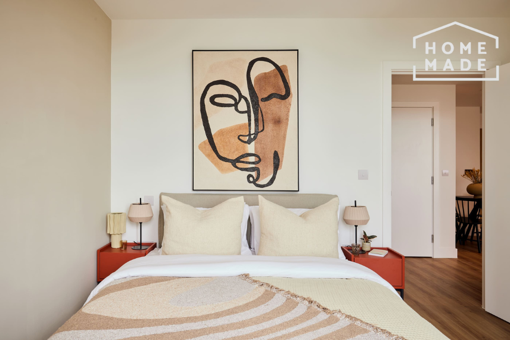 A luxurious king-sized bedroom with built-in wardrobes provides generous storage, while contemporary design touches add a sense of understated elegance. Every apartment also includes a private balcony: perfect for enjoying a morning coffee or taking in sweeping views of London’s skyline.